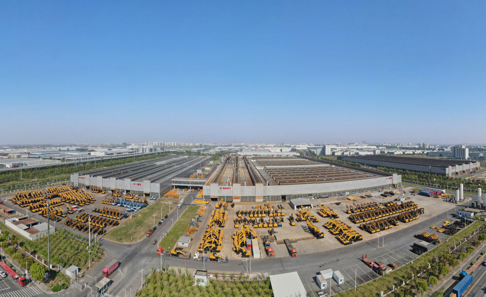 空中俯瞰上海三一重机股份有限公司外景(无人机全景照片,2025年4月15日摄)。新华社记者 方喆 摄