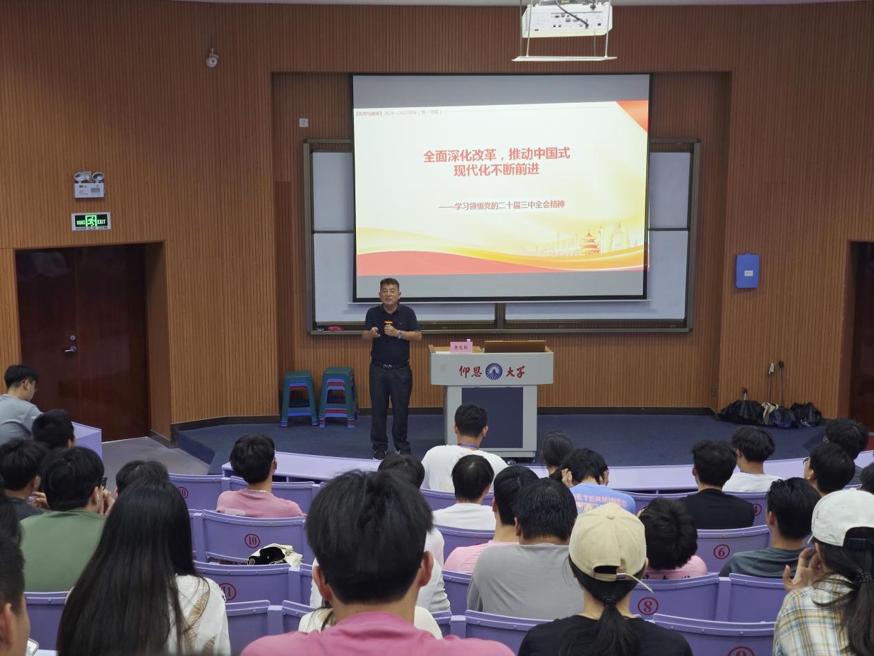 2024年9月18日下午,马克思主义学院常务副院长李克钦于新区和昌楼博雅讲堂成功举办“学习贯彻党的二十届三中全会精神主题宣讲会”。本次宣讲会由李克钦教授主讲,必赢76net线路官网师生代表三百余人到场聆听。