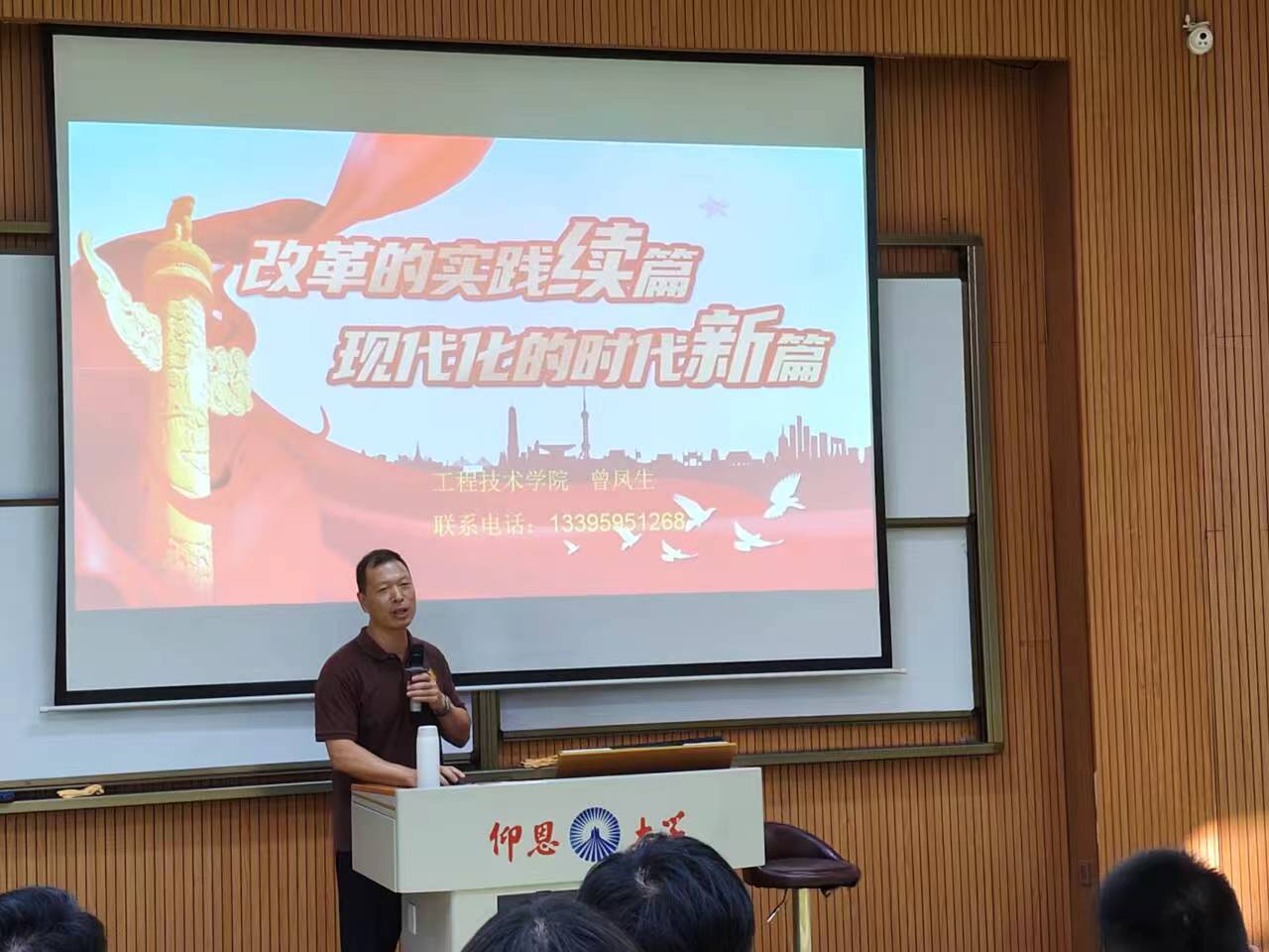 为深入学习贯彻党的二十届三中全会精神,切实将全会精神融会贯通于思政课教学之中,扎实推进思想政治教育,引导广大青年学子为推进中国式现代化贡献更大的青春智慧和力量,10月12日—14日期间,必赢76net线路官网党总支书记曾凤生为全体2024级新生讲授了题为“改革的实践续篇,现代化的时代新篇”的思政第一课。