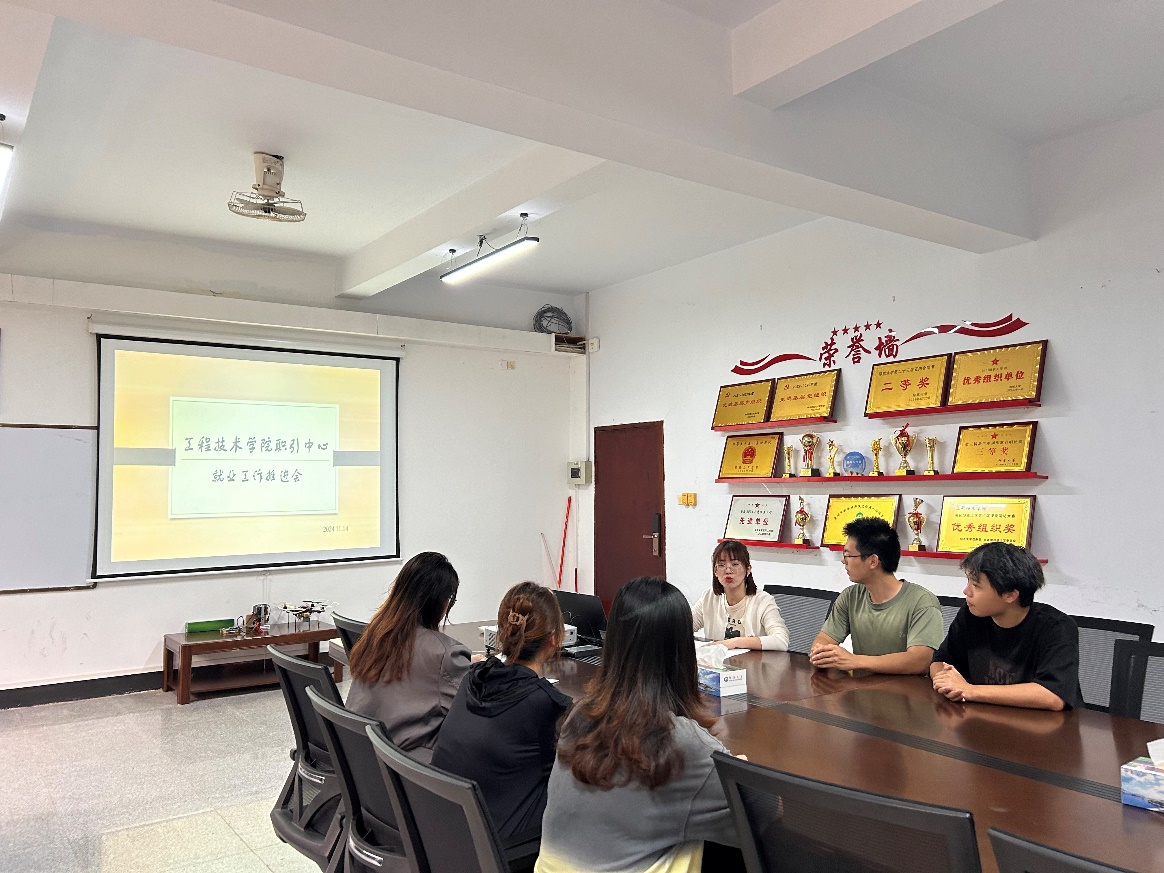 本次会议由职引中心负责老师陈思萍主持,会议伊始,陈思萍老师对职引中心的五个重要部门,即就业部、综合部、外联部、宣传部以及文秘部,进行了部门分工,明确各自职责,确保后续工作能够有条不紊地开展。围绕接下来一段时间的工作重点,布置了具体任务安排。例如每周的岗位收集,汇聚丰富多样的就业岗位信息;宣传部推出高质量就业宣传推文,为学生传递最新就业资讯;同时,各部门还要通力协作,积极开展就业政策宣传工作,让学生们能够及时、全面地了解各项利好政策,助力他们更好地把握就业机会。最后大家一起讨论如何更好的举办招聘会,从招聘会场地的科学合理布置,到活动现场人员的高效调动,力求打造一场高质量、有成效的招聘会,为学生与用人单位搭建优质的交流对接平台。