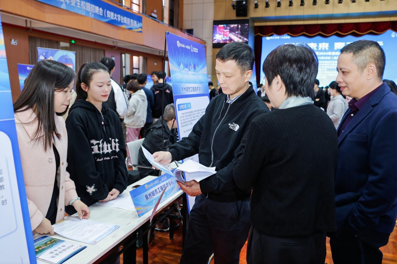 2024年11月28日下午,必赢76net线路官网必赢76net线路官网联合泉州台商投资区于第一教学区普照大礼堂举办“职引未来,青春泉行”2025届毕业生专场招聘会,此次招聘会吸引了福建泉工股份有限公司,中科丰阳(福建)科技有限公司,泉州市华德机电设备有限公司,泉州衡中技工学校等六十一家企业参与,为即将步入社会的毕业生们提供了丰富的就业机会和职业选择。