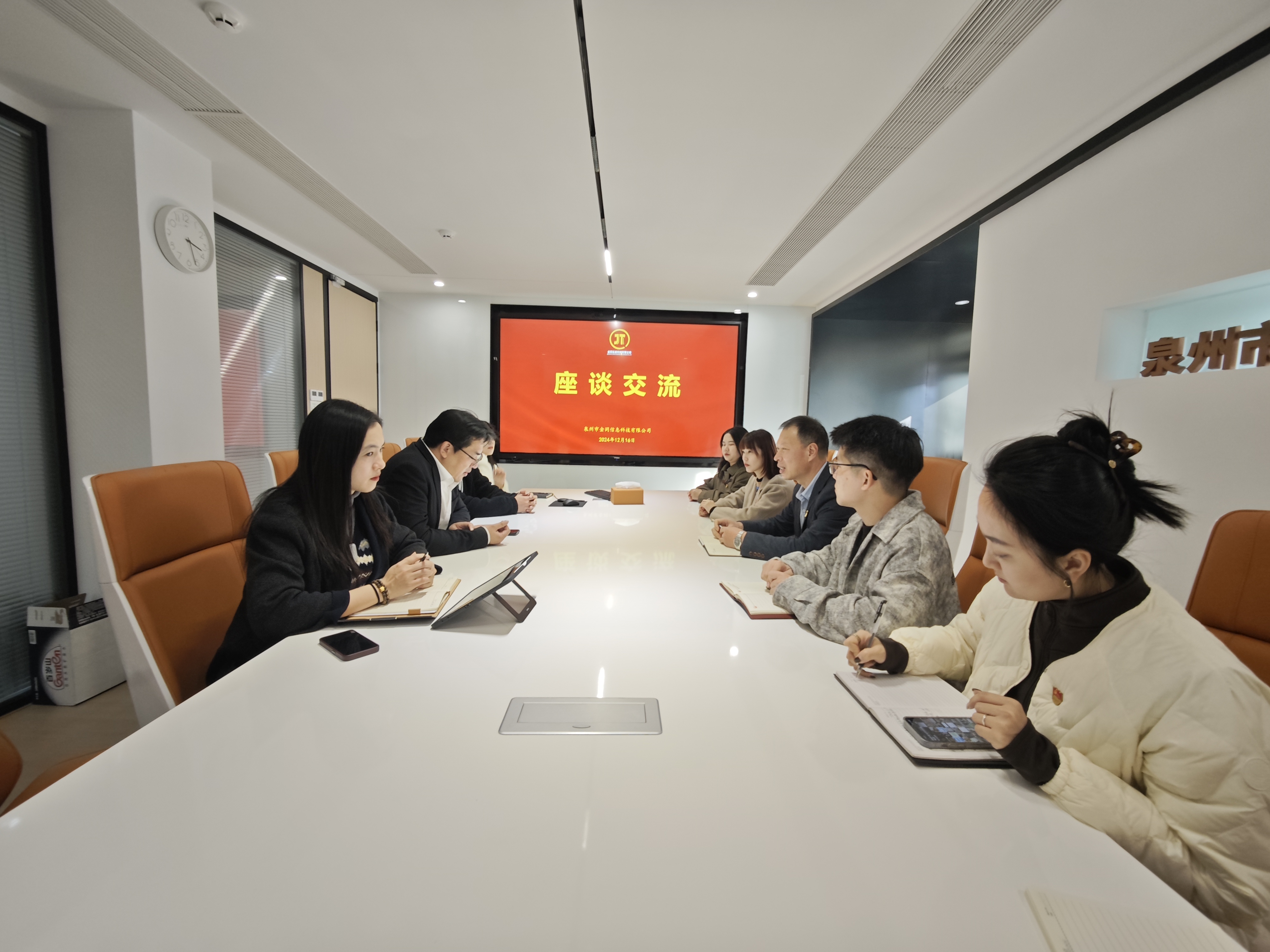 会议随后转向了对企业文化的讨论。张荣光董事长详细介绍了泉州银顺通集团始终坚持的“共创、共赢、共未来”的企业核心价值理念,以及一系列促进员工职业发展的措施。曾书记对此表示高度赞赏,认为这些举措不仅有助于提升企业的竞争力,也为社会培养了大批优秀人才。