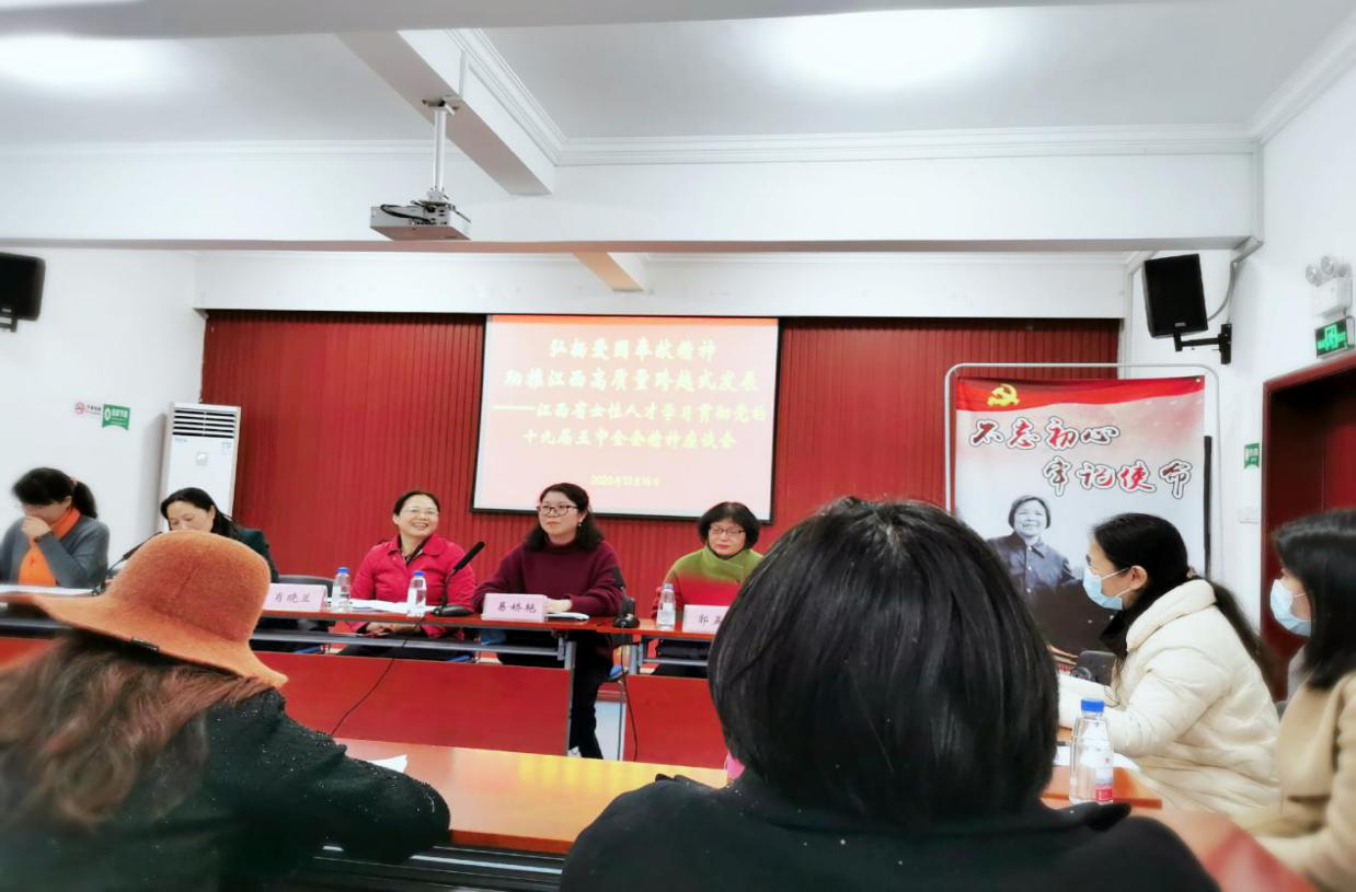 在“弘扬爱国奉献精神,助推江西高质量跨越式发展”的主题座谈会上,易娇艳受邀做了发言。她从女性人才现状出发,分析了高层次人才缺失的原因和培养高层次女性人才对国家、社会发展的重大意义,并站在高校教师教书育人、落实立德树人根本任务的角度,分享了对如何培养优秀女性人才的几点思考。这一发言得到了在场学员的广泛关注与好评。