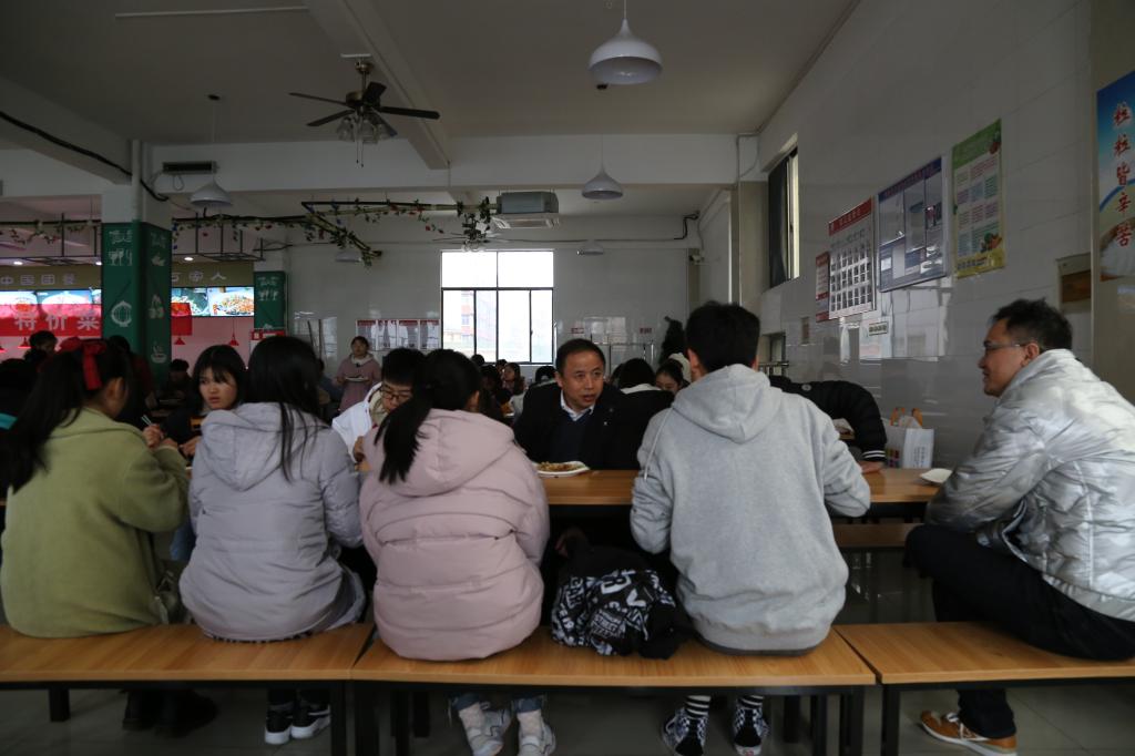 23日中午,林火平来到北区食堂,走进学生当中,与本科部202班的同学们共进午餐,师生畅谈学校发展其乐融融。