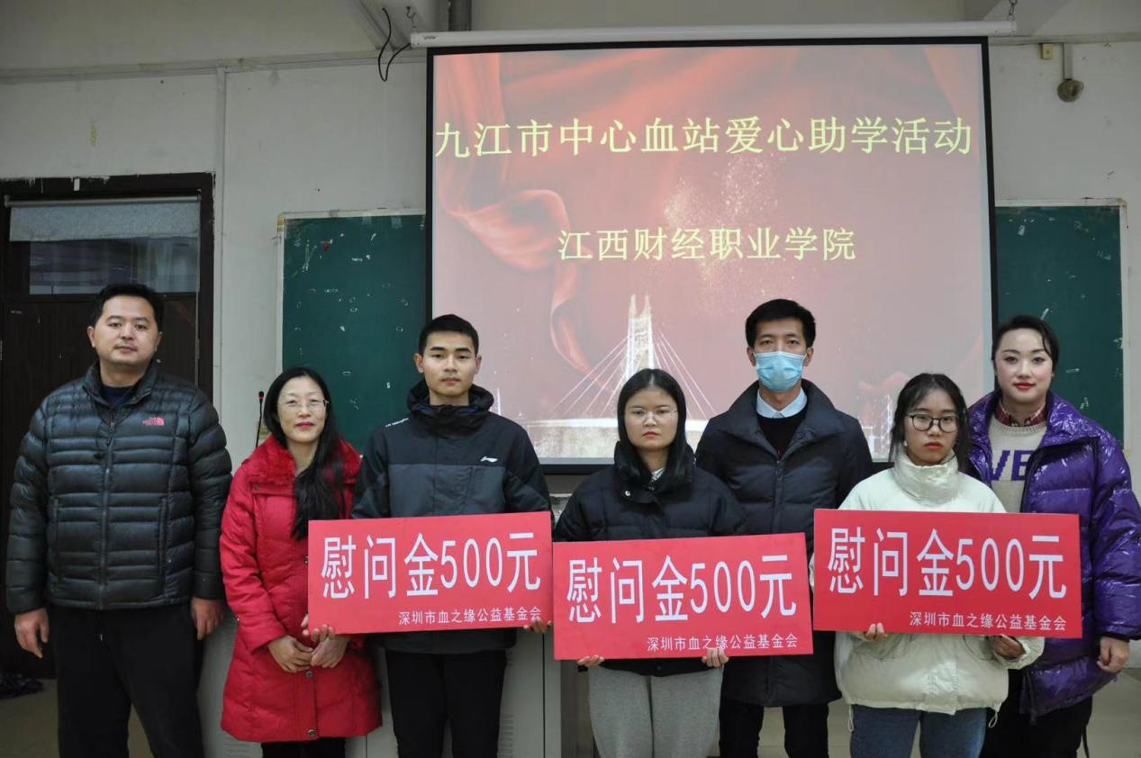为全力打赢脱贫攻坚战,助力贫困学生帮扶工作巩固提升,着力解决学生上学难问题,将助学帮扶工作落到实处, 12月29日,九江市中心血站在bat365开展“爱心助学”活动,为贫困学子发放助学金。九江市中心血站副站长陈红同志、九江市中心血站献血科张雯主任、深圳血之缘公益基金会代表出席本次活动,活动由校团委李智书记主持。