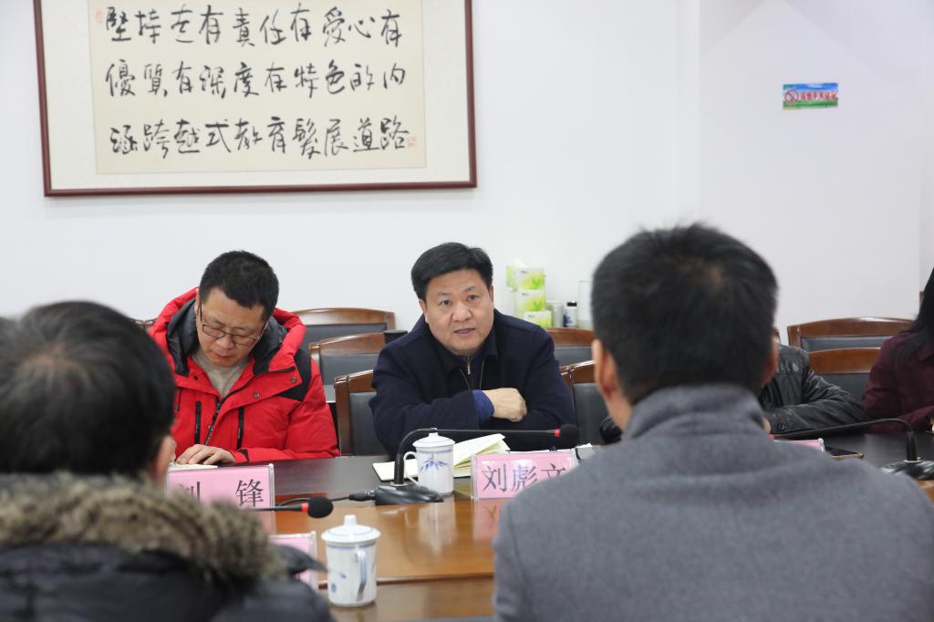刘彪文首先对周总经理一行到访表示热烈的欢迎,接下来介绍了学校未来发展的中长期规划,特别是近三年主要围绕办学层次提升、新校区建设、校园文化建设和专业调整等目标努力,并表达了与九江本地行业企业深入合作、携手深耕职业教育的愿望。