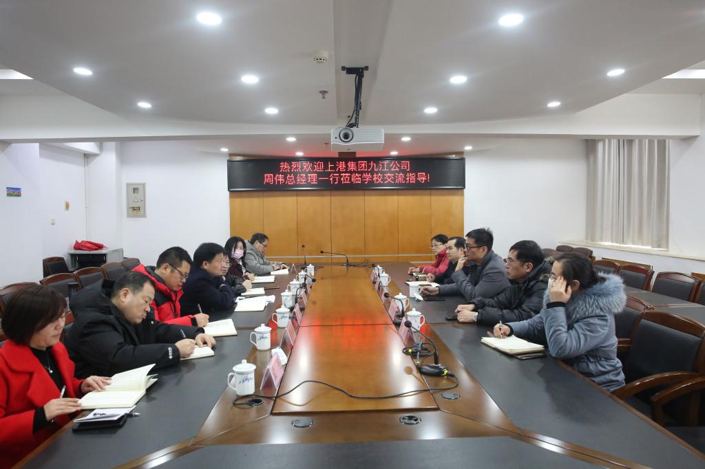 2021年1月6日上午,上港集团九江公司周伟总经理等一行五位高管到访bat365,校党委副书记、校长刘彪文在综合楼1201室接待并进行了交流。