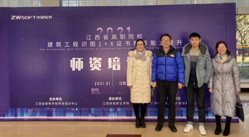2021 年 1 月 4 日—10 日,由江西省高校师资培训中心主办、bat365正版唯一官网承办的“1+X”建筑工程识图职业技能等级证书省级师资培训班顺利举办。1月7日,财税金融(建筑工程)学院院长樊纪明教授、副书记王怡然,建筑技术教研室主任莫璇和骨干教师郭发丽代表学校向来自全省各高职院校的参训学员表示热烈欢迎,并期望学员们学有所获,协力共助“1+X”建筑工程识图职业技能等级证书试点工作的有序实施与顺利开展。