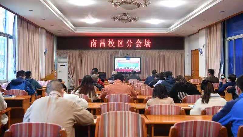 校党委书记林火平作动员讲话,党委副书记、校长刘彪文主持大会,校领导班子成员出席,全体中层干部和党员参加大会,南昌校区同步视频参会。