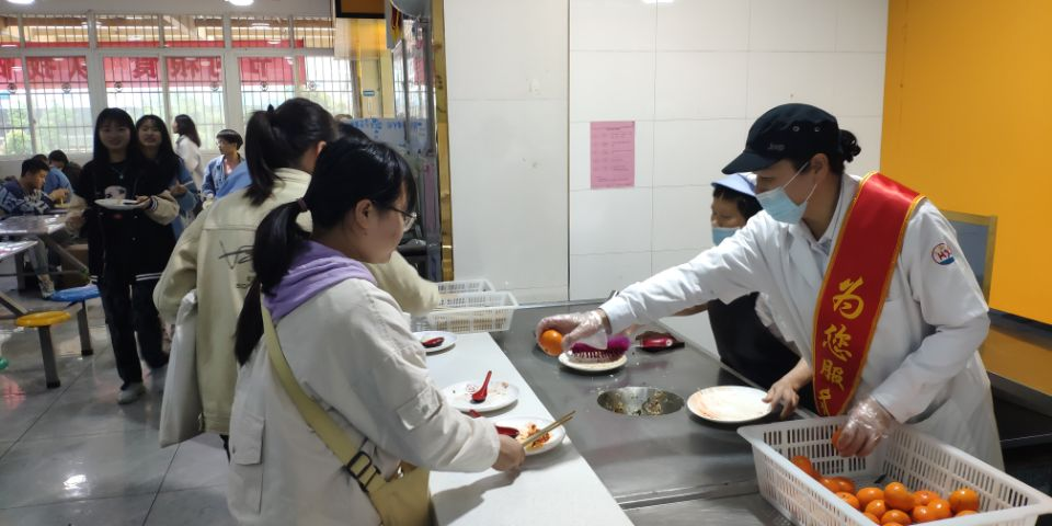 为进一步贯彻落实学习习近平总书记关于坚决制止餐饮浪费行为重要指示精神,按照江西省财政厅、教育厅关于《制止餐饮浪费培养节约习惯》的通知要求, 2021年3月29日起,bat365南区食堂开展了为期一周的“光盘行动赠送水果”活动,鼓励师生珍惜粮食、杜绝浪费、合理点餐。活动期间,为鼓励师生人人“光盘”,师生用餐结束后,只要将“光盘”放至餐盘回收处,即可领取餐后水果一份,以此表达对师生节约粮食行为的肯定和鼓励。