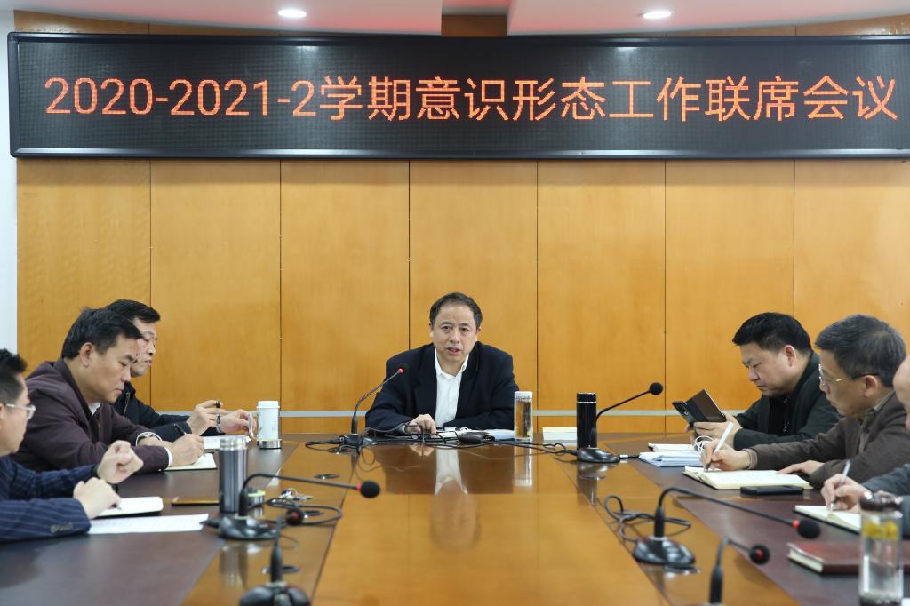 校党委副书记、校长刘彪文强调,意识形态工作是党的一项极端重要的工作,是政治、是方向、是民心,是统一思想、凝聚力量的工作。各级领导干部要正确认识意识形态工作。意识形态本质上是方向路线问题,是定位站位问题,是行为行动上的问题,不能停留在口头,要做到入脑入心践行。要坚持做到上下一条心、统筹一盘棋、全校一张网、核心一条线,确保校园意识形态安全。