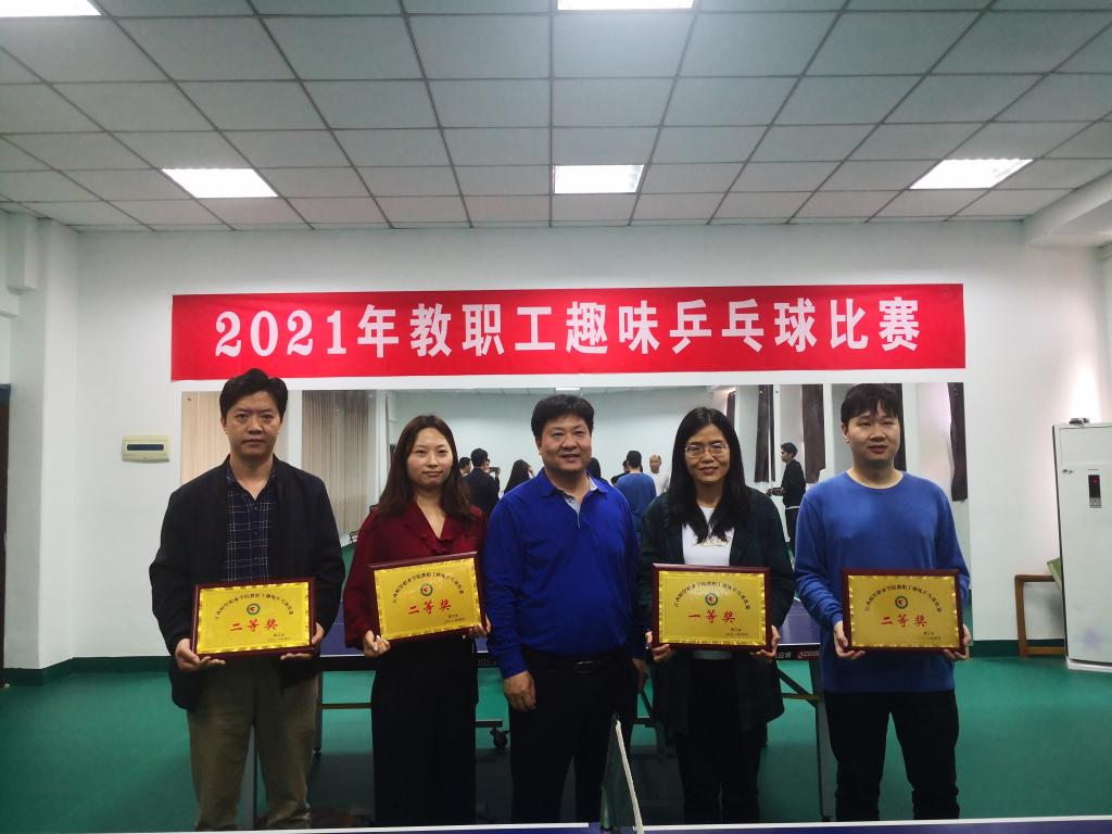4月23日下午,2021年教职工趣味乒乓球比赛圆满落幕。经过两周紧张、激烈的角逐,最终,数字经济学院分工会荣获一等奖,机关三、外国语学院、机关四分工会荣获二等奖。校长刘彪文亲临比赛现场并为获奖单位颁发了奖牌。