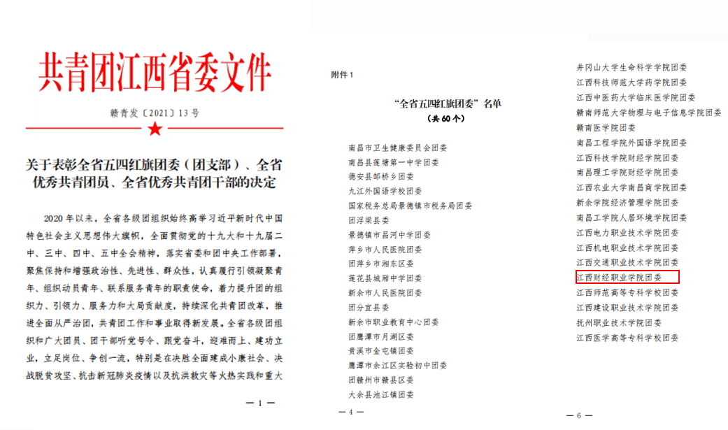 4月30日,共青团江西省委印发《关于表彰全省五四红旗团委(团支部)、全省优秀共青团员、全省优秀共青团干部的决定》(赣青发〔2021〕13号),继校团委被评为2020年度全省高校共青团工作优秀单位后,bat365共青团工作再传喜讯,获评2020年度“全省五四红旗团委”。