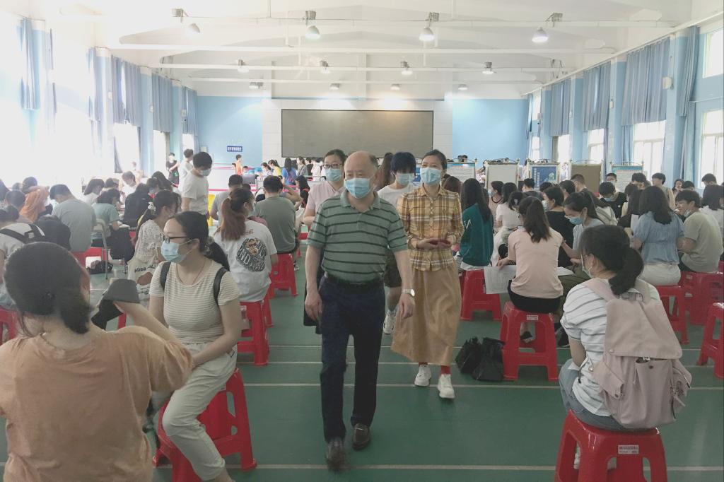刘超委员一行先后走访了集合区、备检区、接种区和留观区,向现场工作人员详细询问了接种工作的流程安排、后勤保障、应急措施等情况,对全体工作人员和学生党员志愿者的工作给予充分肯定,勉励大家要勇担责任、互相配合、耐心细致,确保学生疫苗接种工作圆满完成。
