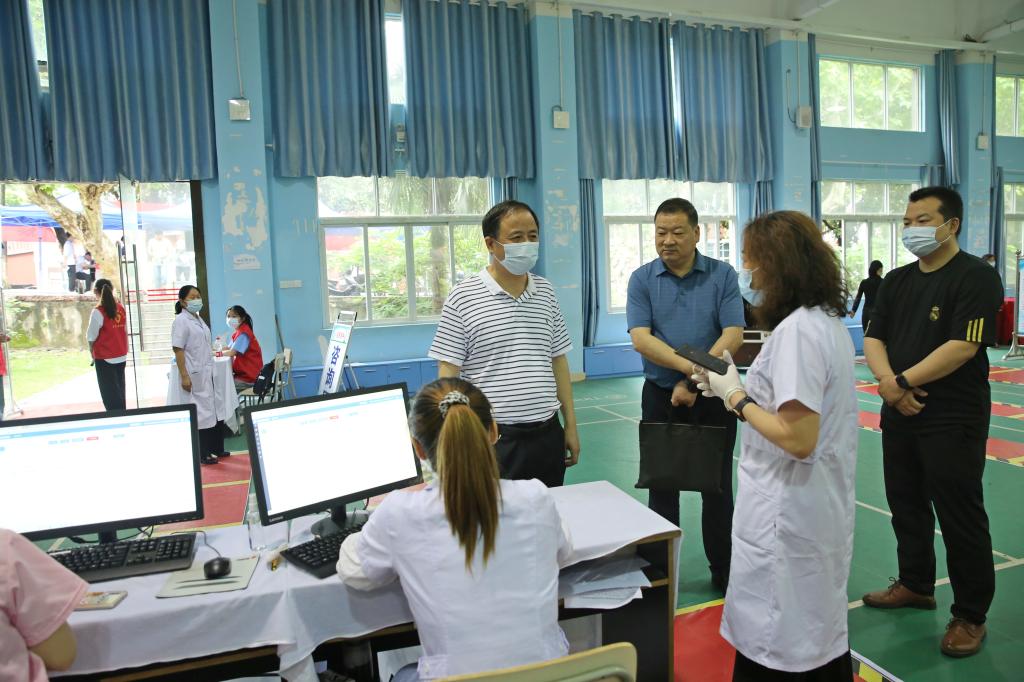 校党委书记林火平、校长刘彪文等领导到学校接种点检查指导疫苗接种工作,并进行疫苗接种。
