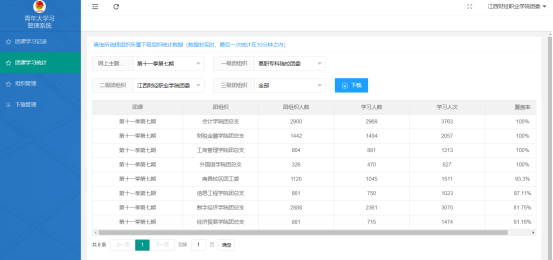 网络化动员,让网络课堂更有广度。每周组织全校团员青年参与“青年大学习·一起学党史”网上主题团课,用“声”动有趣的形式,推进党史学习教育入脑入心、走深走实,目前已开展“青年大学习·一起学党史”网上主题团课8期,累计参学人次达8万余人,各期综合参学率超90%,外国语学院团总支、会计学院团总支、财税金融学院团总支、工商管理学院团总支团员学习率均达100%,持续掀起团员青年学习党史的热潮。