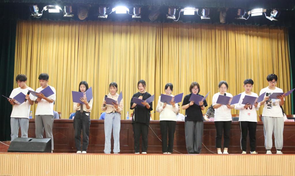 开幕式第四项议程为心理委员代表宣读班级心理委员岗位承诺书,台上,十名心理委员依次排开,用整齐划一的声音郑重承诺:严格遵守班级心理委员各项工作准则;恪尽职守、认真履行各项工作职责;助人自助,为同学们的心理健康福祉奋斗不息。