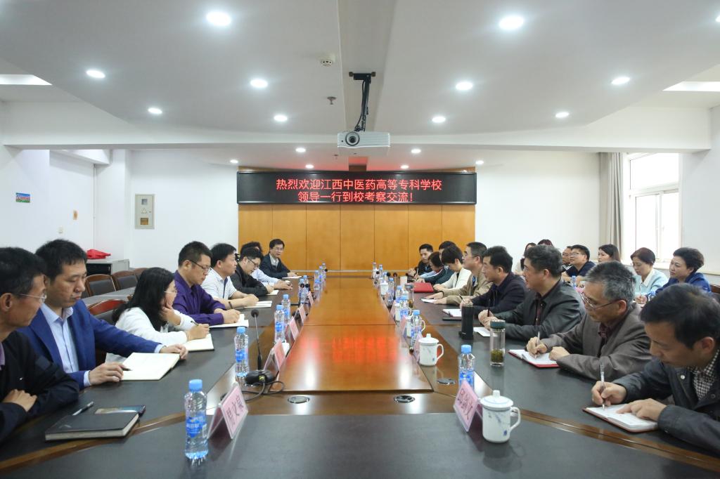5月19日,江西中医药高等专科学校校长涂国卿,党委副书记梁茂华,党委委员、副校长卢萍一行19人来bat365交流访问。校长刘彪文,校党委委员、组织人事处处长刘锋热情接待了涂国卿校长一行,学校对口二级学院、部门相关负责人一同参加交流会谈。