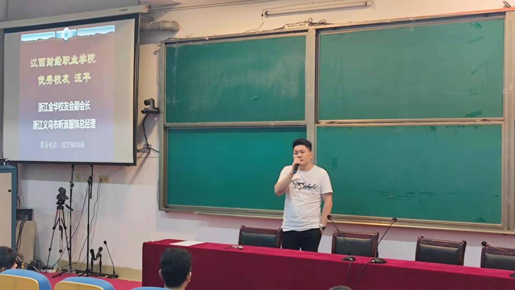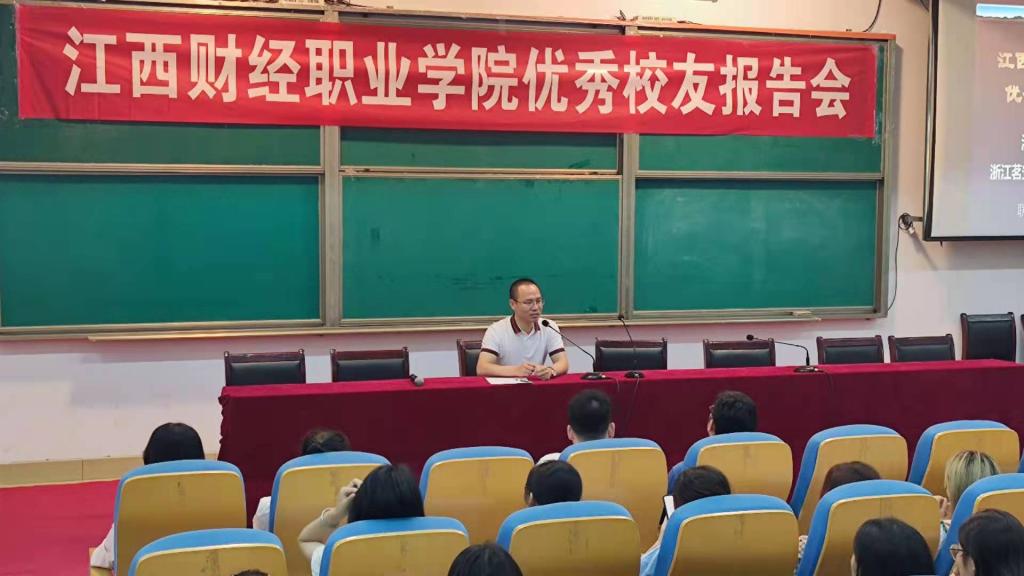 bat365于6月28日下午在综合楼7楼报告厅顺利举办优秀校友就业创业专题讲座。两位优秀校友——浙江茗安婴童用品有限公司总经理姚国兴和浙江义乌昕派服饰有限公司总经理汪平分享了自己的成长故事、工作心得,给大家带来了一场精彩的演讲。本次讲座由招生就业处处长周剑主持,外国语学院书记熊水金和院长王胜华出席讲座。