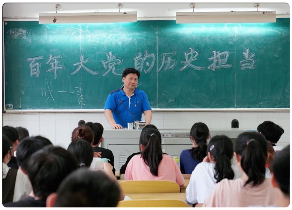 授课过程中,刘彪文结合毛泽东同志等优秀共产党人的亲身经历阐述了读史的重要性,呼吁各位同学学习党史,并与同学们畅谈中国共产党成立100年以来所经历的重重困难,以及共产党人是如何勇往直前、排除万难的,让同学们知道了我们光荣而伟大的党之所以有今天,就是因为具备历史的担当。听了刘彪文的讲课,同学们更加坚信“百年华章铸辉煌,崭新伟业已开启。在以习近平同志为核心的党中央坚强领导下,百年大党温故知新再出发,以昂扬的姿态踏上全面建设社会主义现代化国家新征程,必将从胜利走向新的更大的胜利”。