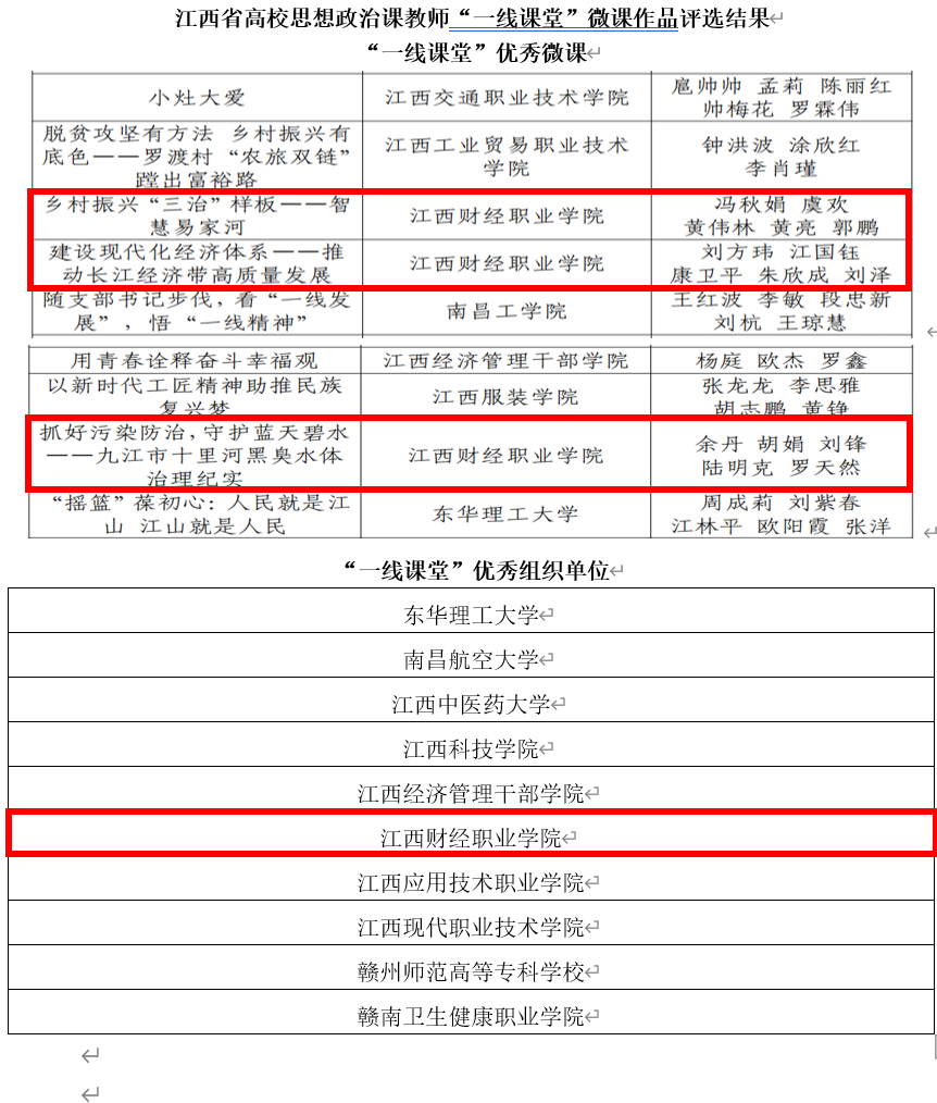 9月3日,江西省高校思想政治课教师“一线课堂”微课作品评选结果正式公布,共评出85门优秀微课作品和10个优秀组织单位,bat3653个团队8部微课作品获评优秀微课,学校同时荣获优秀组织单位。