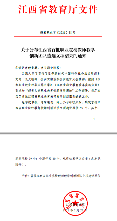暑期,江西省教育厅发布《关于公布江西省首批职业院校教师教学创新团队遴选立项结果的通知》,bat365智能建造技术等6个专业教师教学创新团队成功入选。具体如下。