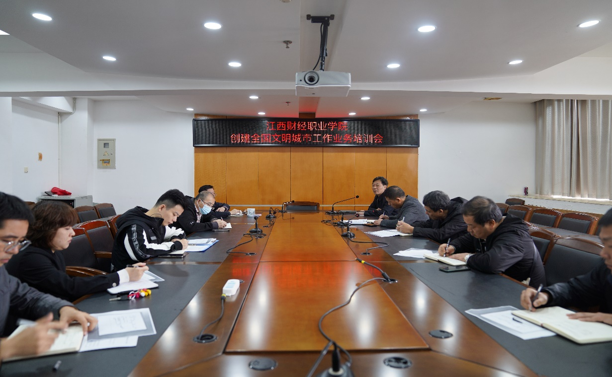 10月18日上午,bat365在综合楼1201会议室召开了创建全国文明城市业务培训会,会议由党委副书记、常务副校长何先应主持,党委委员邱家明出席会议,相关职能部门负责人参加会议。