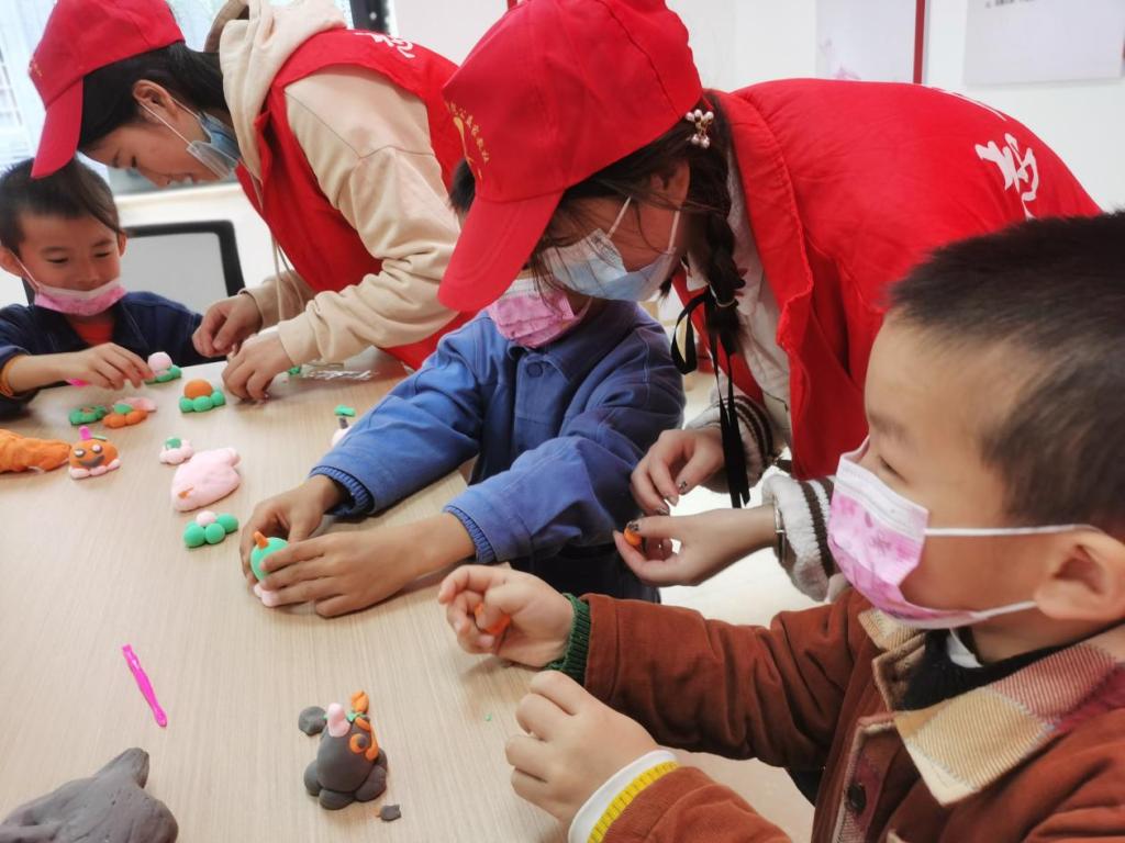 在活动现场,志愿者与26名小孩结对,指导孩子们进行手工制作。在志愿者的耐心指导下,孩子们互相帮助,充分发挥自己的想象力和创造力,制作出形状各异、色彩斑斓的作品。作品完成后,孩子们一个个脸上都洋溢着特别开心的笑容。