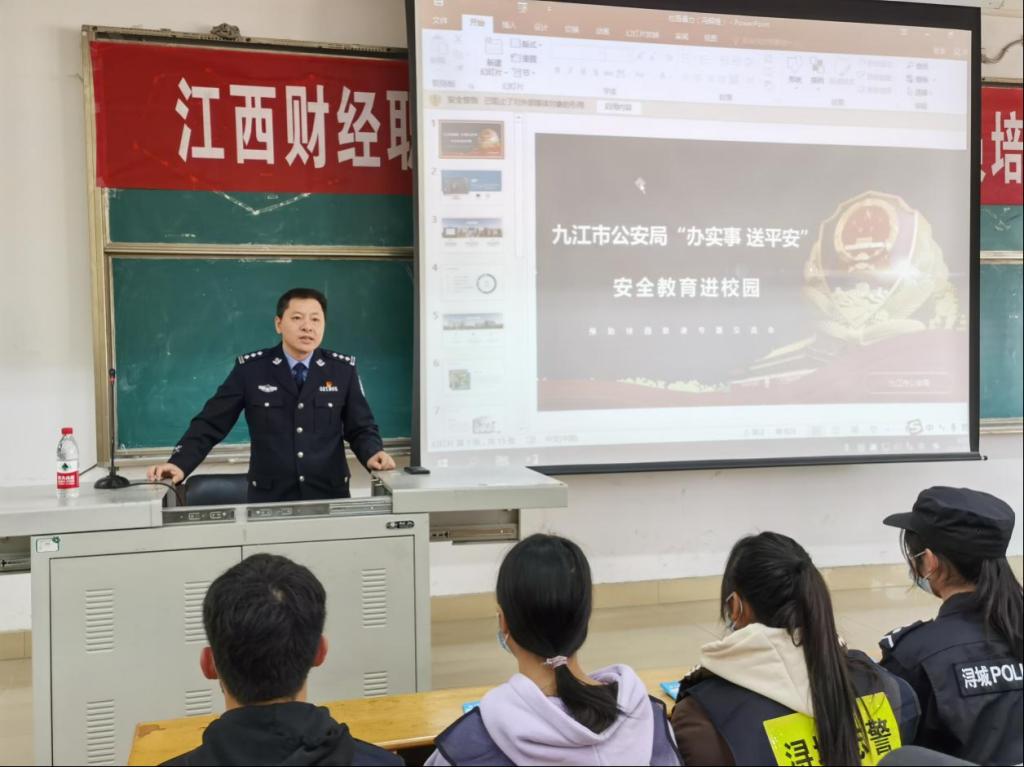 校园安全篇:浔阳区庐南派出所冯警官为大家带来了以校园安全为主题的普法知识讲座,呼吁大家要学法、懂法、用法,做一名守法好公民。