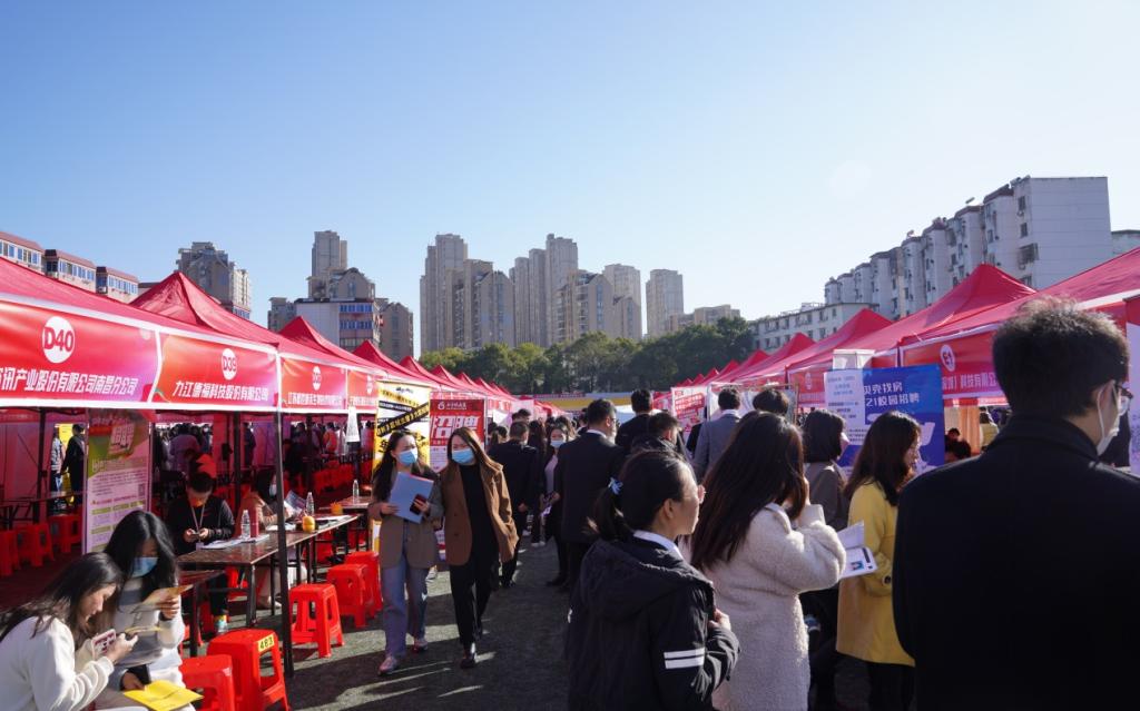 秋意正浓求职季,精准对接助扬帆。为贯彻落实省委、省政府关于引导和鼓励毕业生留赣就业的决策部署,进一步推动bat3652022届毕业生就业工作,11月24日上午,bat365在学校田径场成功举办江西省2022届高校毕业生“商贸物流”产业链专场招聘会暨bat365正版唯一官网2022届毕业生秋季就业招聘会。省就业创业服务中心副主任陈学军,公共服务处副处长安光,义乌市人才管理服务中心主任吴群伟,副主任骆旭伟,科长鲍腾飞,党委副书记、校长刘彪文,党委副书记、常务副校长何先应,党委委员、纪委书记阙沪平,党委委员邱家明、刘超等领导莅临现场指导,招就处全体同志、各二级学院书记和部分班主任参加了招聘会。