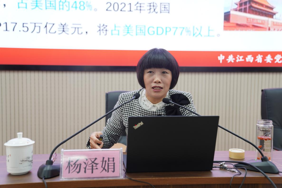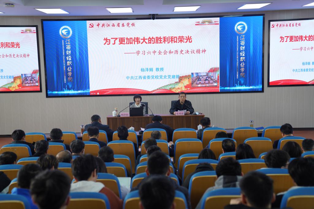 为进一步深入学习贯彻十九届六中全会精神和省第十五次党代会精神,12月17日,学校邀请中共江西省委党校党史党建部研究生导师、杨泽娟教授来bat365开展了十九届六中全会精神辅导报告。学校在家领导班子成员、党员教师和学生代表共300余人聆听了报告,南昌校区同步参会。报告会由校党委委员、副校长张成斌主持。
