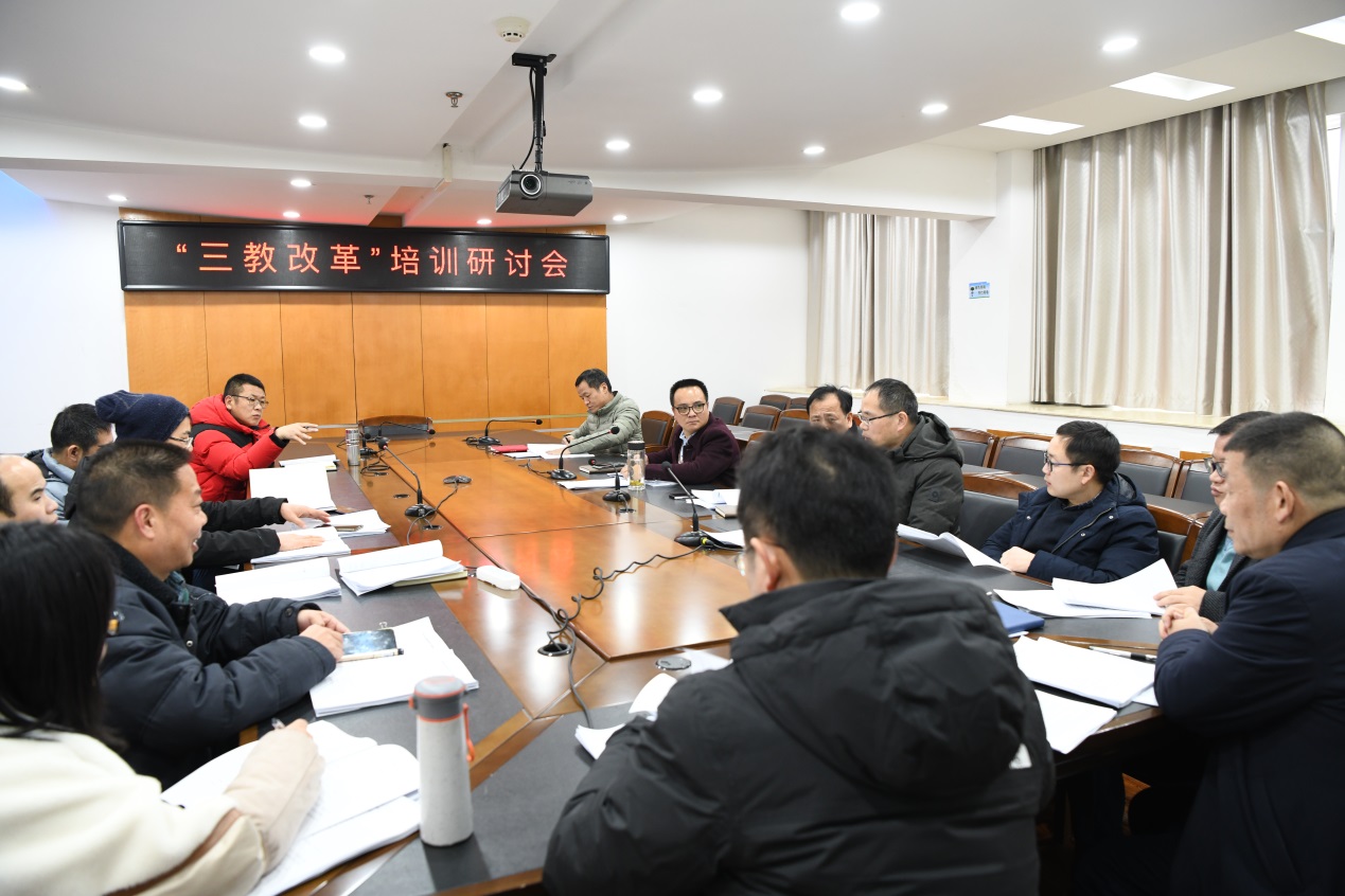 2022年1月12日—14日,bat365利用寒假时间召开了“三教改革”培训研讨会。开班仪式在七楼报告厅举行,校党委副书记、校长刘彪文和在家的校领导班子成员、全体教师参会。校党委副书记、常务副校长何先应主持开班仪式。