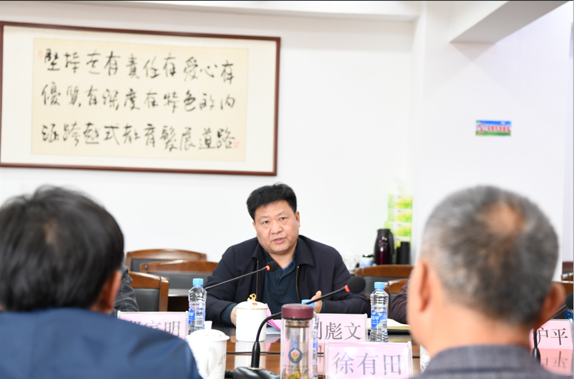 刘彪文代表学校对徐有田一行的到来表示热烈欢迎,并简要介绍了学校的发展历程、“开门开放”的办学定位、学校办学水平提升、新校区建设、专业建设等情况,并表示要加强对外交流与合作实现互利共赢。