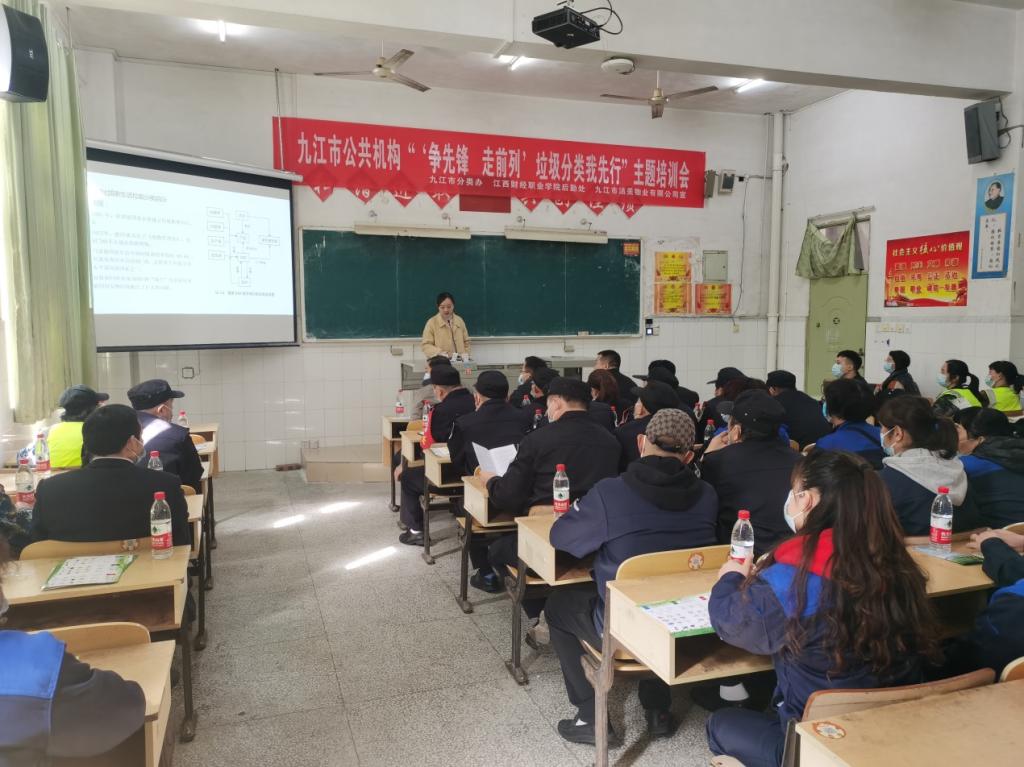 3月9日上午,受bat365正版唯一官网后勤管理处邀请九江市城市生活垃圾分类领导小组办公室王慧一行3人来bat365开展垃圾分类培训,为后勤服务人员普及垃圾分类知识,增强环保意识。后勤管理处相关工作人员、物业保洁人员、宿舍管理员、学生食堂工作人员共40人参加了此次培训。