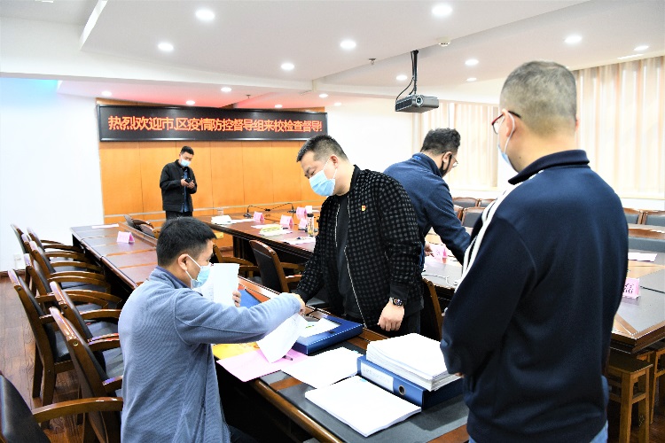 邱家明汇报了bat365春季开学以来的疫情防控工作,对bat365各项防疫措施、核酸检测、疫苗接种等情况作了详细介绍;胡振组长强调当前疫情防疫形势严峻,要加强对重点人员、重点环境、重点环节的监督管理,将各项管控措施落实到位;随后,督察组对学校疫情防控的相关材料进行了查阅;同时详细察看了各出入口、商业门点、快递点等场所的情况,并提出了整改意见。