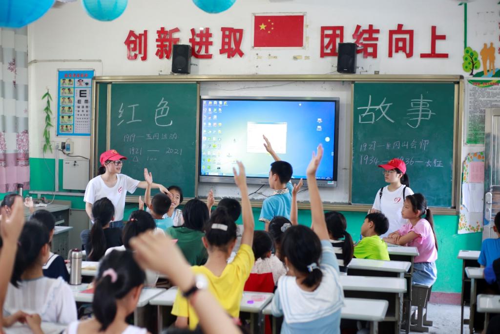 活动期间,服务队向当地留守儿童赠送了《闪闪的红星》、《雷锋的故事》等红色读本。活动围绕“讲好红色故事,传承红色基因”这一鲜明主题,开设了红色阅读指导、红色故事分享、红诗朗诵、红歌演唱、党史知识宣讲、红色绘画、红色手工等特色课程,与孩子们一起体验红色文化,接受红色精神洗礼。当地党委、政府和学校领导对此次活动给予了充分的肯定,向团队赠送了“爱心支教助儿童成长,无私奉献展志愿精神”锦旗以示表彰。