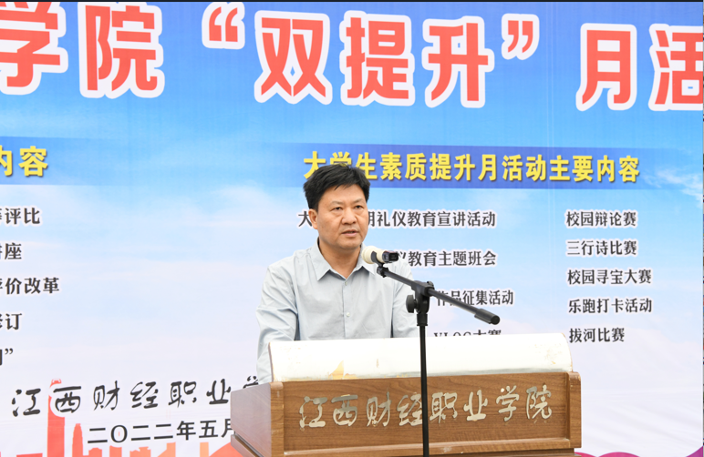 校党委副书记、校长刘彪文作动员讲话。刘彪文指出,教学质量是学校的生命线、学生素质不断提升是学生成长成才的可靠保证。刘彪文要求,全体教师要加强师德师风建设、努力提高教育教学水平,做新时代“四有”好老师;全体学生要加强品德修养、掌握好专业知识和职业技能,德技并修,真正成为符合社会主义建设需要的合格人才。全校师生要共同努力,以实际行动回答好“财院三问”,推动“双提升”活动走深走实,促进学校优良教风、学风和校风建设,提高教育教学水平和人才培养质量,落实好立德树人根本任务。