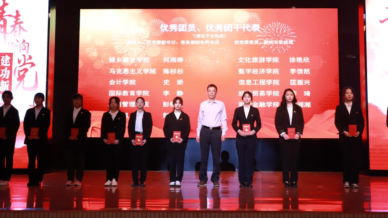 校党委副书记、校长刘彪文在会上作了重要讲话。刘彪文向受表彰的集体和个人表示热烈祝贺和诚挚问候,肯定了团委过去一年在青年思想建设、团组织建设等方面取得的成绩,赞扬了青年团干、团员在疫情防控、抗洪抢险、文明城市建设、乡村振兴等工作中贡献的青春力量,并对全校青年提出了几点希望:一是要不忘团的初心,用青春践行“请党放心、强国有我”的铮铮誓言;二是要不负时代责任,用青春捍卫为祖国、为人民不懈奋斗的理想信念;三是要不辱青春使命,用青春成就更有高度、更有境界的人生;四是要不枉江财之行,时刻牢记“正、勤、敬、和”校训,真学实干,矢志奋斗,赤忱担当。