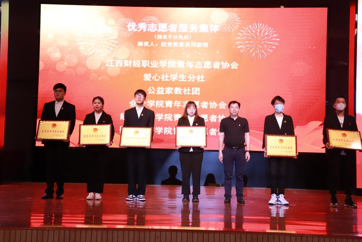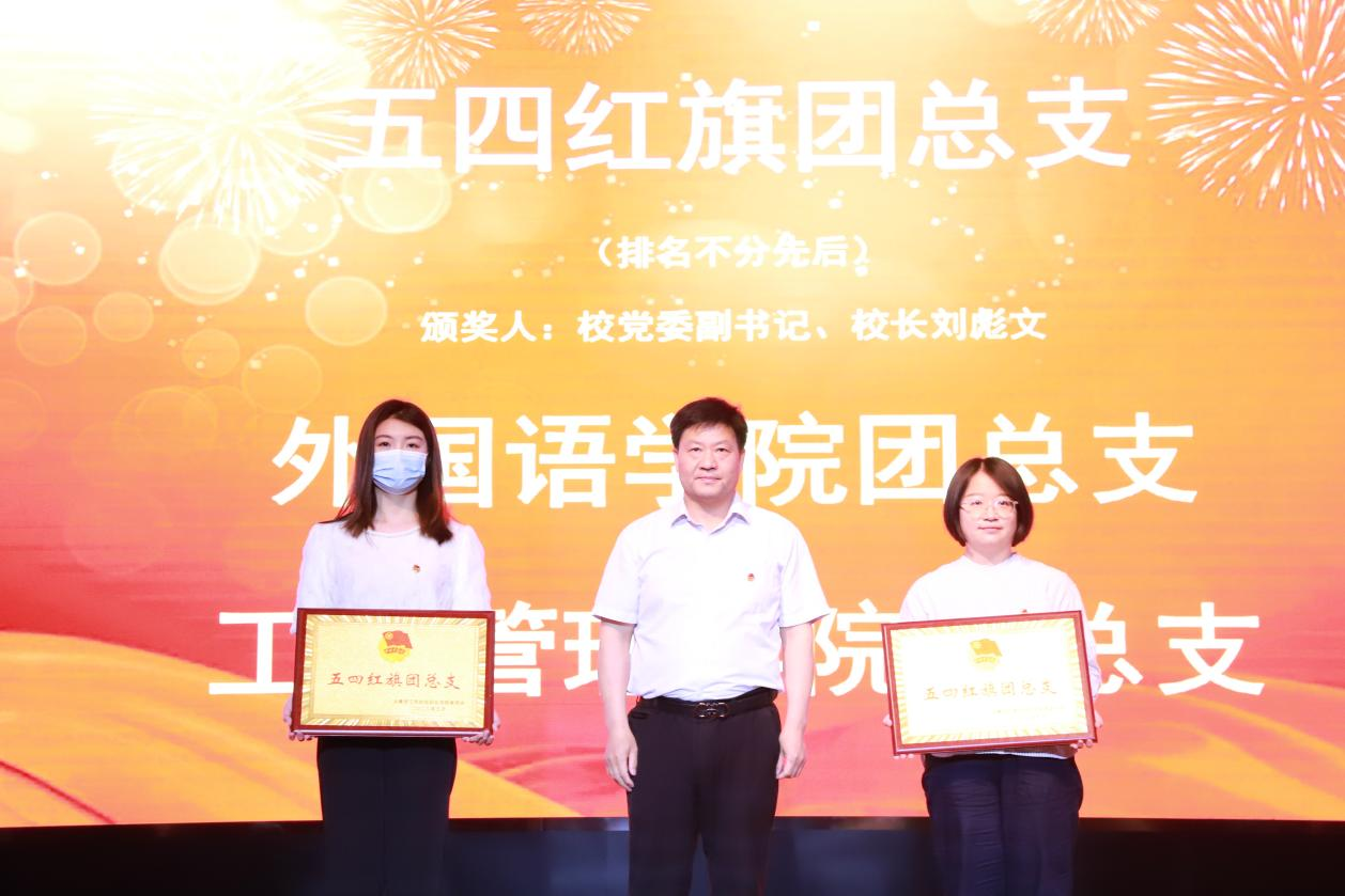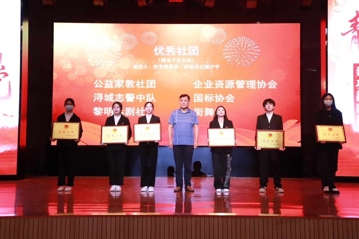 校领导班子成员分别为受到表彰的五四红旗团总支、优秀团员(团干)代表、优秀社团、优秀志愿者服务集体颁奖。