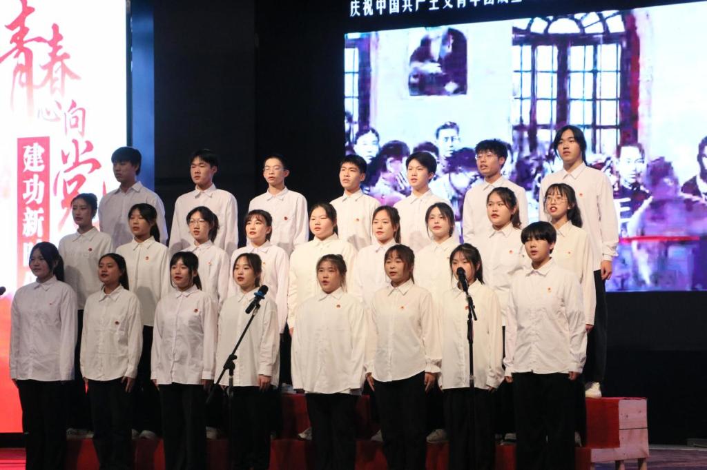 风采展示环节由 “百年峥嵘忆初心” “百舸争流勇争先”“百花齐放展风采”“百炼成钢显担当”四个篇章构成,通过 “2021年全国活力团支部”“青年志愿者风采”视频、歌曲《有我》合唱、情景剧《两当起义》等节目,展示了bat365团员青年积极向上、自信自强的青春风貌。