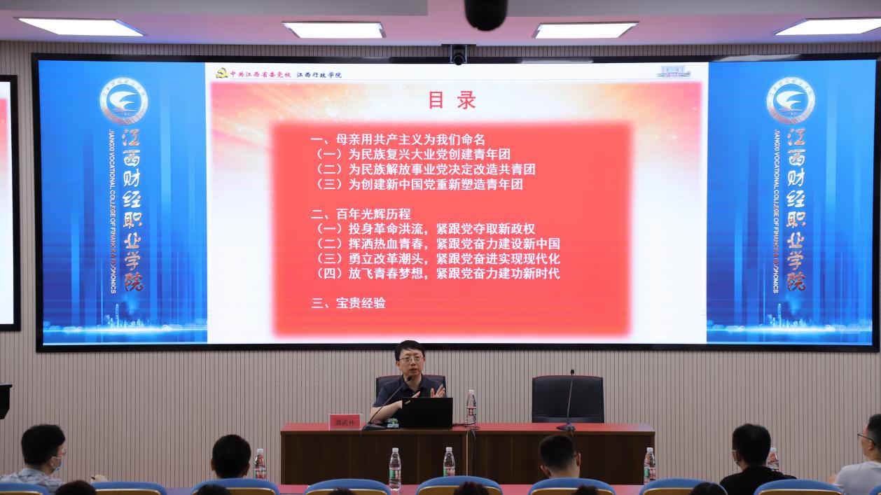 宣讲会以讲座的形式开展。中共江西省委党校、江西省团校副教授、江西共青团和青年工作理论研究会副秘书长龚武林作了题为《中国共青团百年辉煌历程和宝贵经验》的报告。