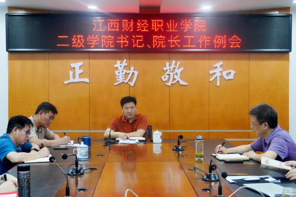 6月2日,学校在1201会议室召开第六次二级学院院长、书记工作例会。会议由校长刘彪文主持,校班子成员出席会议。各二级学院、本科部、双创学院、继教学院以及人事处、教务处、招就处、绩效中心、科研处、财务处、对外合作交流中心和质量办等部门负责人参加会议。