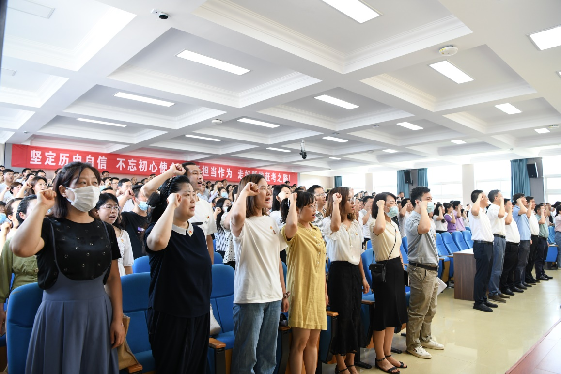 7月1日上午,bat365在综合楼7楼报告厅隆重召开庆祝建党101周年暨“七一”表彰大会,全体党员及非党员中层干部参加了大会,会议由校党委副书记、常务副校长何先应同志主持。