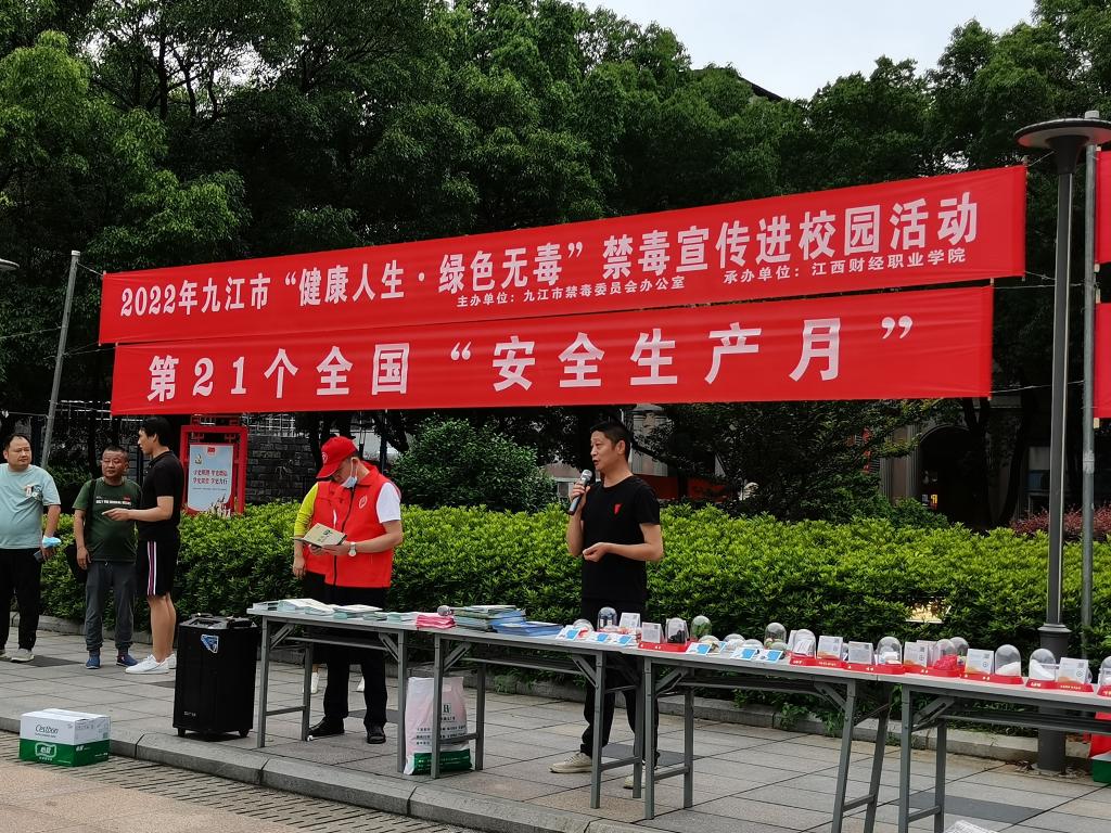 今年六月是第21个全国“安全生产月”,为不断强化大学生识毒、拒毒和防毒能力,教育引导广大青年学生积极参与禁毒宣传教育活动,提升大学生自我防范意识,6月10日下午,bat365安全保卫处联合九江市禁毒委员会在学校综合楼广场开展了以“健康人生 绿色无毒”为主题的宣传教育活动。