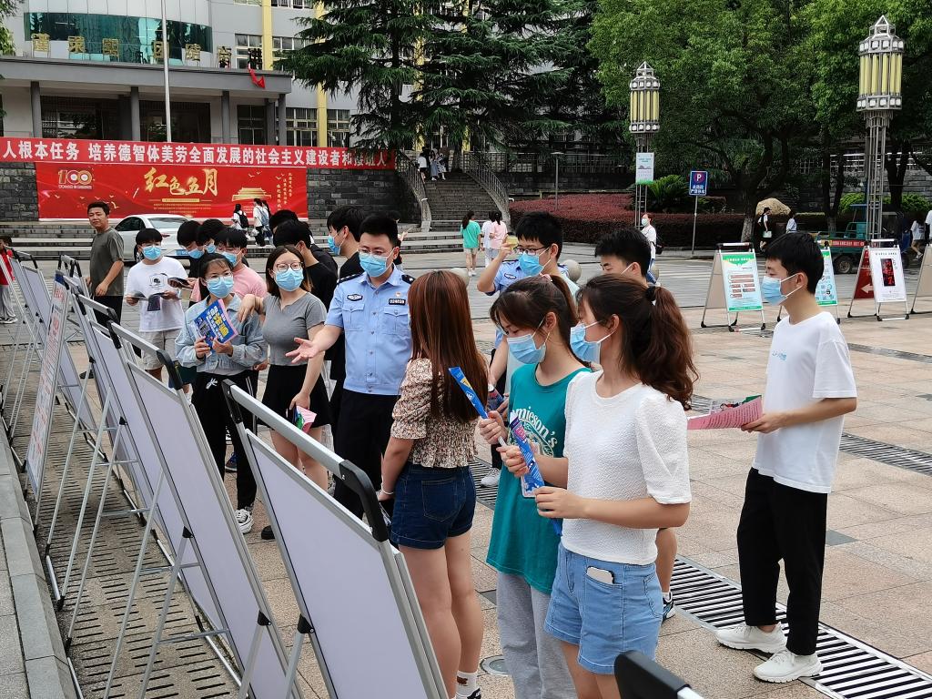 本次活动中,九江市禁毒委员会办公室民警通过禁毒展板展示、宣传资料和宣传品发放等方式,全方位、多角度向师生宣传禁毒知识,普及禁毒法律法规,介绍各类毒品对个人、家庭和社会带来的巨大危害,引导师生坚持健康生活方式,自觉抵制毒品。