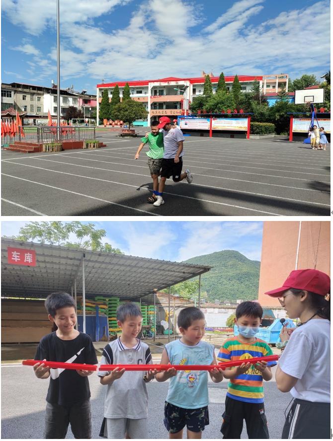 在蔚蓝的天空下,鲁溪中心小学校园的一角,小朋友们和志愿者们一起进行两人三足游戏,大家分成两个队伍,两队各自派出选手,随着裁判员的一声令下,志愿者和小朋友从起点出发,在旁边队友的加油呐喊声中渐渐靠近终点线;在传运乒乓球的比赛里,“刘刘陈夏”组合以绝佳的默契度,一举成名。四个小男生默契配合,跑出了最好的成绩。当阳光洒在他们的身上,一份童真的笑颜悄然绽放!在素拓活动中,志愿者们与小朋友们拉近了彼此之间的感情,孩子们在活动中萌发了团队精神,收获了欢声笑语。