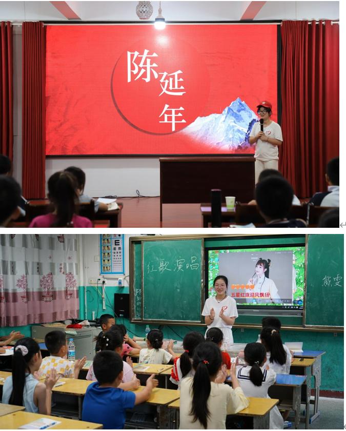 “红色是中国共产党中华人民共和国最鲜亮的底色”,要用好红色资源,延续红色血脉,用红色文化铸魂育人。益童服务团队时刻不忘传承红色文化,在鲁溪镇和华林镇,志愿者们以图文并茂的形式、通俗易懂的语言,向孩子们解说中国共产党的百年光辉历程以及“五四精神”“红船精神”“井冈山精神”“长征精神”“西柏坡精神”等伟大精神。小朋友们认真听讲,踊跃回答问题;红色故事分享课堂气氛十分活跃,志愿者和小朋友们争先恐后地跟大家一起分享自己所熟知的英雄故事;红色诗词诵读声音嘹亮,红歌演唱慷慨激昂,给这个夏天打上了红色的烙印。