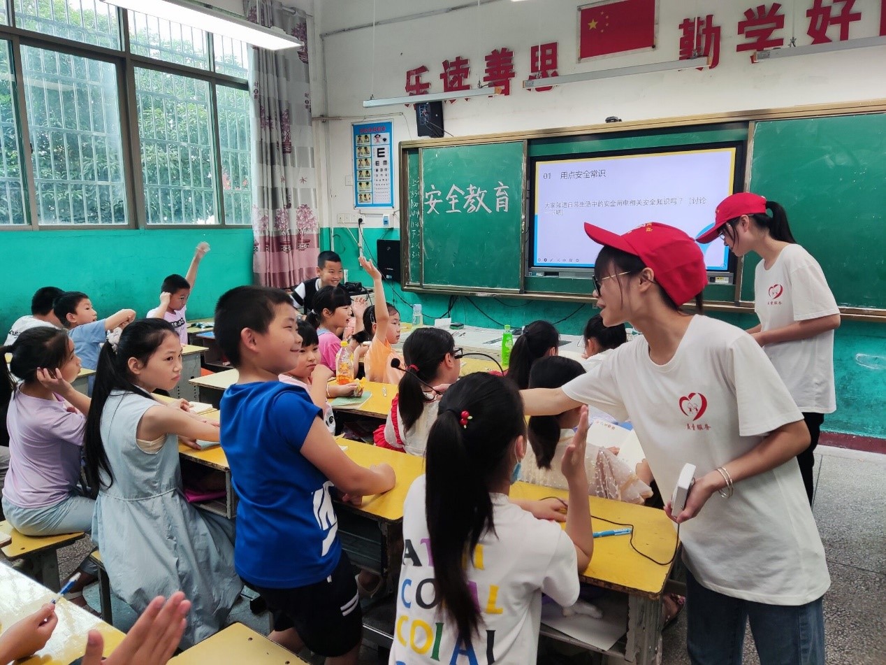暑期都是安全事故的高发期,为帮助小朋友们牢固树立安全意识,益童服务团队特开设安全教育课程,向小朋友们讲述安全用电、防溺水等知识。只见志愿者小刘老师在课堂上向小朋友们提问,话音刚落,一双双小手就齐刷刷地举起来,陈才林小朋友自信的站起来,回答道:“在发生漏电的时候,可以用干燥的木棍挑开插头”。通过志愿者小老师与小朋友们的互动交流,提高了小朋友们的安全意识,特别是防溺水知识。