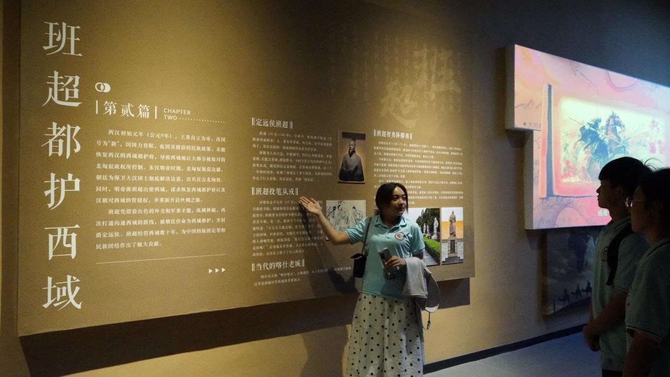在达瓦昆爱国主义教育基地,服务队参观了新疆记忆馆、卫国影像馆,通过观看图片展、实物展、视频影像及场景还原体验等形式,深入了解了新疆历史,全面回顾了党史、新中国发展史、改革开放史、社会主义发展史和新疆“四史”,无声聆听了新疆与内地交往交流交融的历史故事,深刻感受了中国共产党团结带领各族人民共同奋斗的磅礴力量。