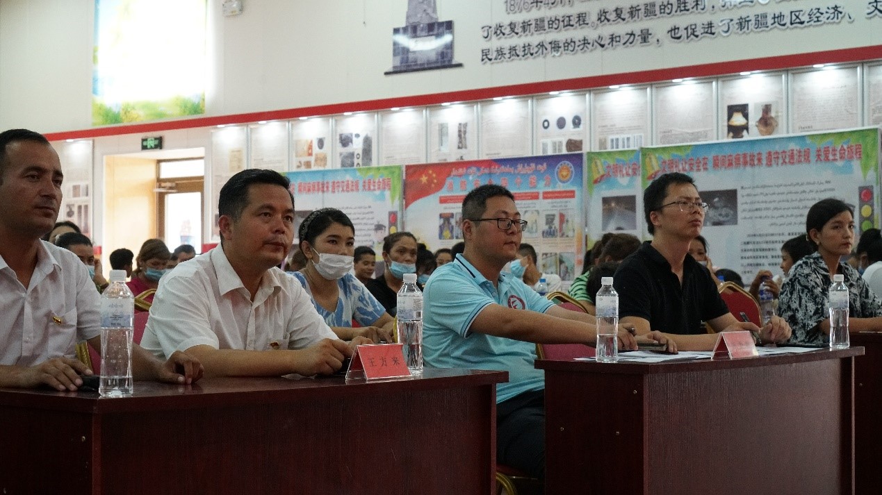 此外,服务队指导教师受邀担任了铁热木镇2022年农牧民“学用国家通用语言文字,铸牢中华民族共同体意识”演讲比赛的评委。比赛中,参赛选手通过工作生活中的孩子学业辅导、看病就医、求职就业等真实故事,分享了学习国家通用语言的深刻感受,表达了对党、对祖国的感激之情。他们的真情流露、热情演讲让服务队师生也深受感动。